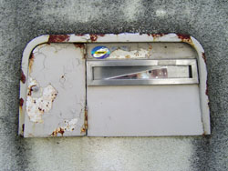 左が表で右が裏です。これは塀の厚みが200mmありましてその壁の中に埋まっているのです。全てを取り替えますと費用がかかりすぎますし投入口のRがかった縁を残したいとのご意向ですから下記のように中だけをステンレスにしました。